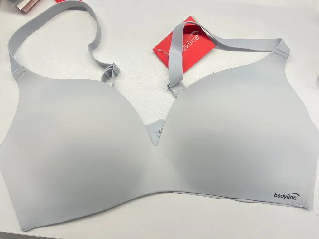 The Kylie Plunge Neck Bra from BODYLINE features a sleek, seamless design. The molded cups provide natural shaping and support without bulk or visible seams. Made with ultra-smooth, lightweight fabric that feels like a second skin. The plunging neckline and clean lines create a modern silhouette while maintaining practical support and comfort.